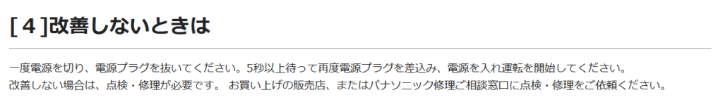 なにはともあれ治ってよかったです。今後もPanasonicをよろしくお願いします」