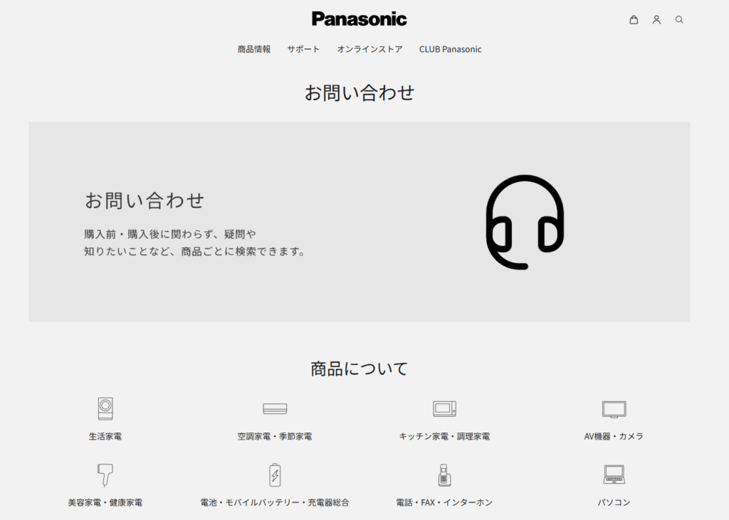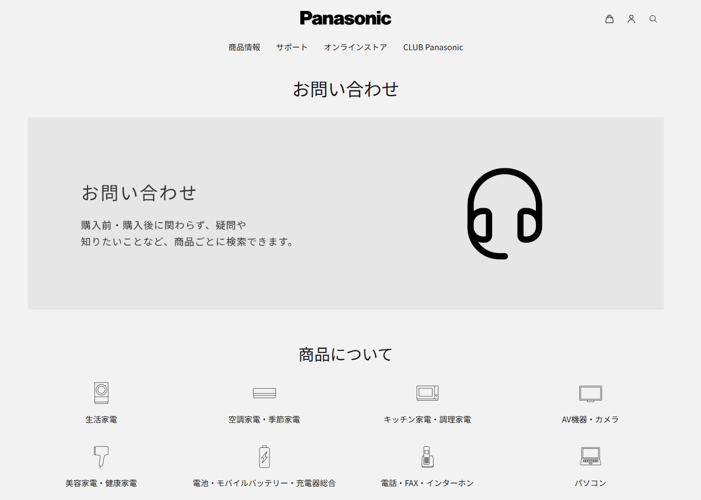 Panasonicのお問い合わせ窓口をインターネット上に発見した。