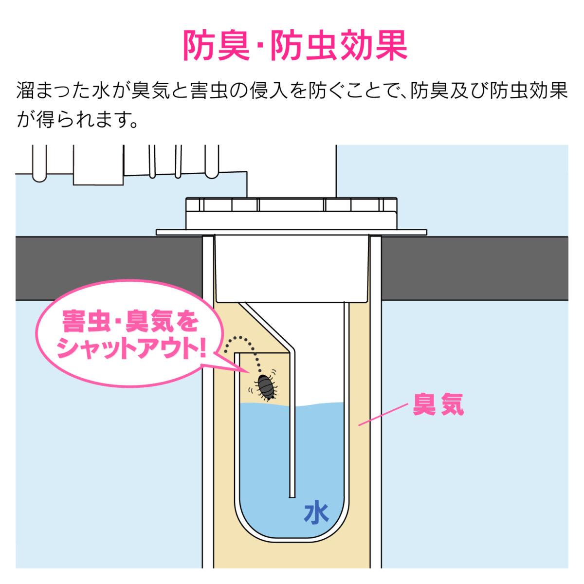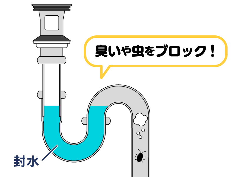 「排水口に下水のニオイが上がってこないように最近の家はトラップが付いているんです。洗面台の下の排水がS字になっているでしょう、あれと同じしくみです」